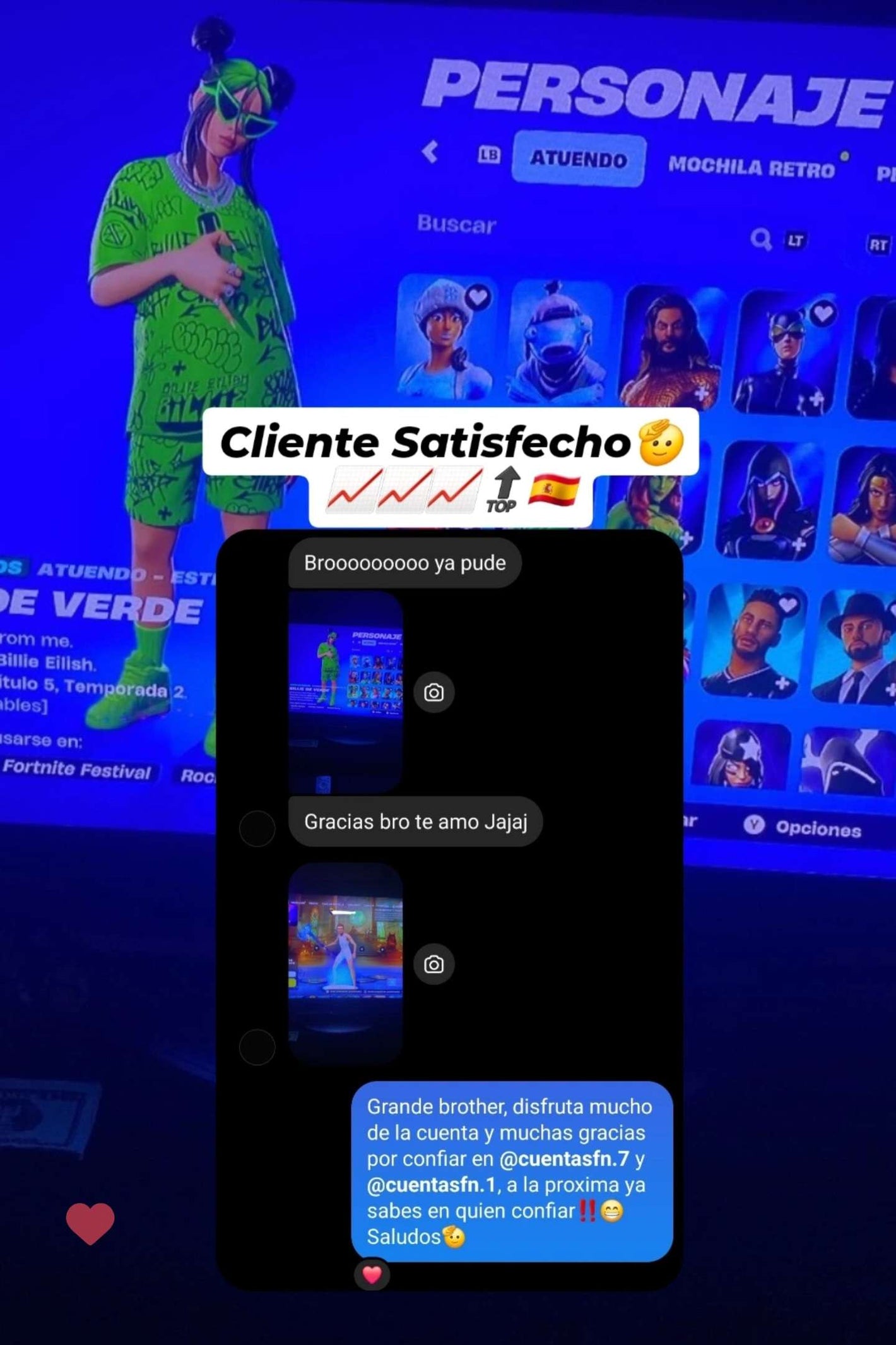MUCHAS GRACIAS POR TODO, MUY FIABLE, MUY BUEN TRATO Y TODO, LA MEJOR PÁGINA PARA COMPRAR CUENTAS SIN DUDA!👌🤍